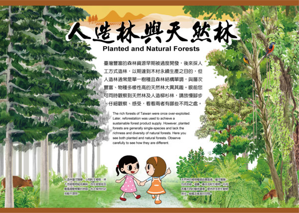樹種的部份,尤其是紅檜、樟樹、肖楠以及烏心石等這些於伐木時代為台灣帶來經濟收入的樹種,老青年坊間琅琅上口.有了樹種知識,再增加造林的作業流程,完整了解森林貢獻.