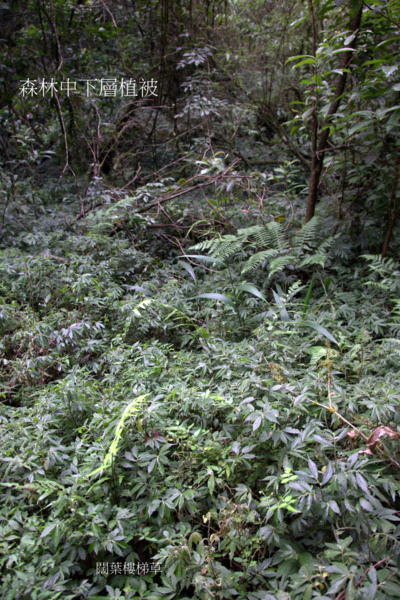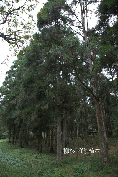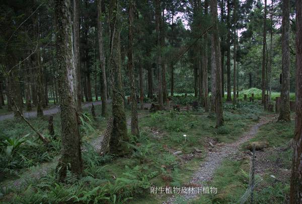 林下植物是一群能適應較弱光照的耐陰植物,當陽光經過層層茂密的樹冠層,到達森林底層只剩少量的光量,為增加光合作用面積,其葉子通常較大且薄.林下植物不僅增進森林層次及生物的多樣性,更提供了野生動物隱蔽的棲息場所及食物來源,是森林生態體系中不可或缺的一部分.這片高聳齊整而又茂密的柳杉林下種植著一群低矮的耐陰性地被草本植物或灌木.綻放五顏六色花朵,這些林下植物展現了它們仰望陽光求生的各種姿態,在微光中吐露著寧靜光輝.