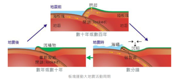 板塊運動的速度緩慢而難以察覺,但隨著板塊的推擠和變形,持續累積的能量可能在瞬間爆發,使板塊之間相互錯動而引發地震,因此板塊交界處的地震發生頻率高。
