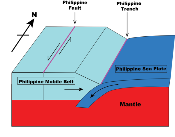菲律賓斷層是在島弧環境中形成的主要左側結構。它容納了菲律賓海板塊和菲律賓群島之間傾斜匯合的一個組成部分。通過1991年至1996年期間的一系列全球定位衛星實驗對這一觀測結果進行了量化。斷層的形成標誌著菲律賓地區新的地球動力制度的開始。在菲律賓中部,這一事件對應於在4 Ma(4個百萬年)