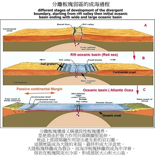 拉張型((DIVERGENT PLATE BOUNDARY-分離型)板塊邊界