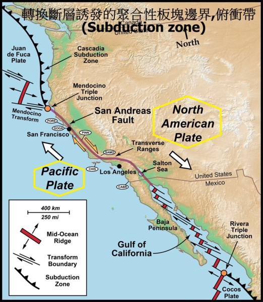 轉換斷層型(TRANSFORM PLATE BOUNDARY或平移型)