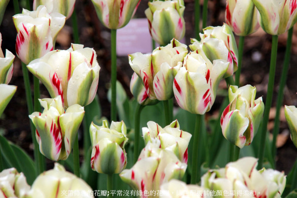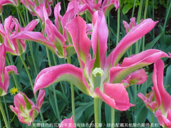 夾帶綠色的花瓣;平常沒有綠色的花瓣,綠色配襯其他顏色顯得柔和。