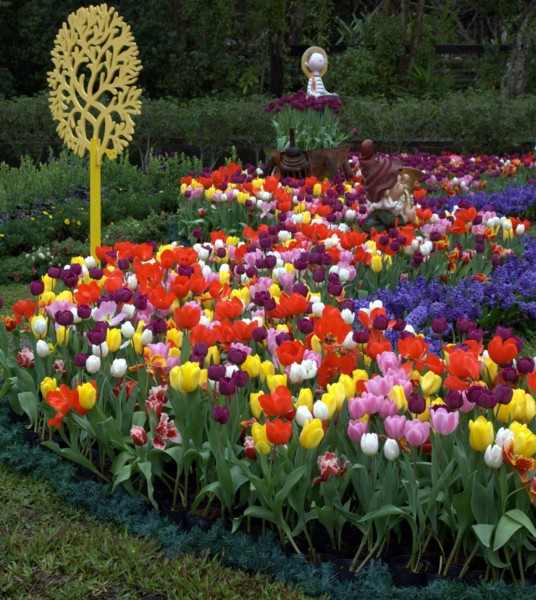 鬱金香最初的型態都是杯狀的,多數是黃色及紅色的,或是紅黃雙色的,是最受歡迎的一種。鬱金香目前已知的,有名字的就有三千種以上。很多新品種的鬱金香是不會年年開花的。要年年開花,必須買那些傳統的品種。所以這裡很多新品種可能好看,但也有缺陷。