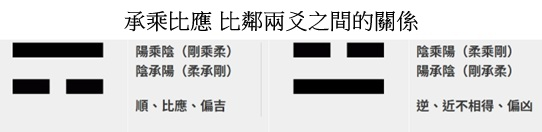乘承說的是比鄰兩爻之間的關係,「乘」指的是駕御在上,「承」則是承載在下。