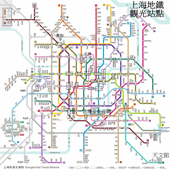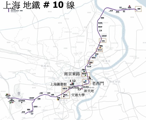 #10 地鐵站交通大學 ‘ 上海圖書館 ‘陝西南路 ‘ㄧ大會址 ‘ 新天地 ‘老西門 ‘豫園;觀光駐足地。
