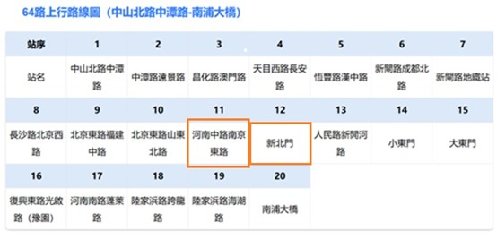 #64公交 河南中路南京東路口~ 新北門站(也可漫遊1200公尺,河南中路經福州路343號杏花樓酒家食早茶),金陵東路 東300公尺為金陵路渡口,渡輪往浦東 東昌渡輪站,往西北漫步濱海步道達陸家嘴,欣賞浦西外灘萬國建築。(D日行程。)