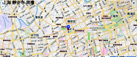 銀城中路,花園石橋路,上海國金中心(LG2層),金茂大廈,上海中心大廈,上海環球金融中心。