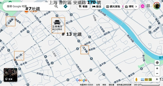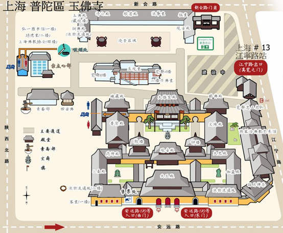 上海地鐵#2 南京東路~南京西路#13線江寧路~玉佛寺,#13江寧至武寧站轉乘#14真如寺站,拜謁。