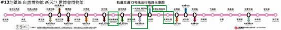 地鐵#2南京東路~南京西路轉乘#13北上至自然博物館。
