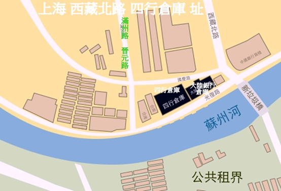四行倉庫是一座位於上海靜安區南部、蘇州河北岸、西藏路橋西北角的倉庫建築。目前正門門牌號為光復路1號,它是座鋼筋混凝土結構的六層大廈,占地0.3公頃,建築面積2萬平方米,屋寬64米,深54米,高25米。這座倉庫創建於1931年,為當時閘北一帶最高、最大的一座建築物。它原是大陸銀行和北四行(金城銀行、中南銀行、大陸銀行及鹽業銀行)聯合倉庫,即緊靠西藏北路的大陸銀行倉庫與緊靠滿洲路(今晉元路)的北四行倉庫兩部分組成的,但一般均統稱為「四行倉庫」。