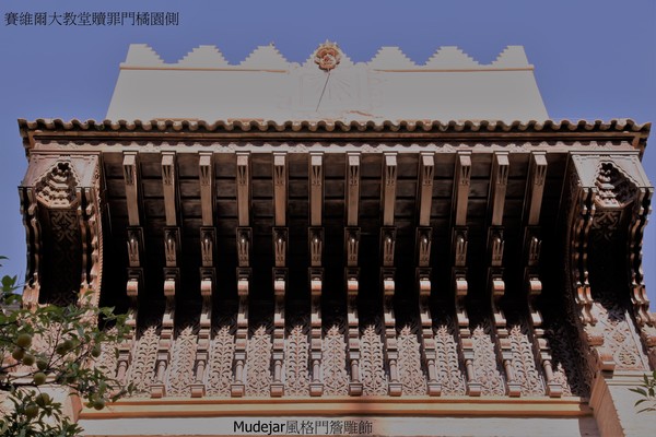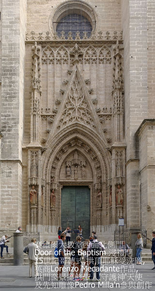 The Door of Sanctuary—庇護所門,由 Pedro Sanchez Falconete設計於17世紀中末,柯林斯柱結構,簷三角窗雕有費迪南III’(King Ferdinand III of Castile) 旁邊是聖 依西多祿’林德大主教兄弟(the Saints Isidore, Leander)及賽維爾守護神 Justa and Rufina姊妹.遺憾是維護不佳.