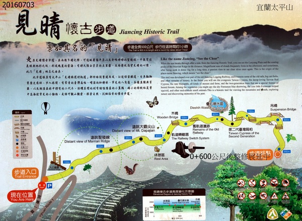 見晴懷古步道是整理運材小火車遺址,漫步其間舒適’悠閒,不喘’涼快,由此用了較多慢活目光欣賞大山’林內蓊鬱蒼翠,山澗瀑流.600公尺努力體會「全球28條最美小路」,用心思維是感恩的,維護工程人員辛苦了.