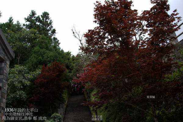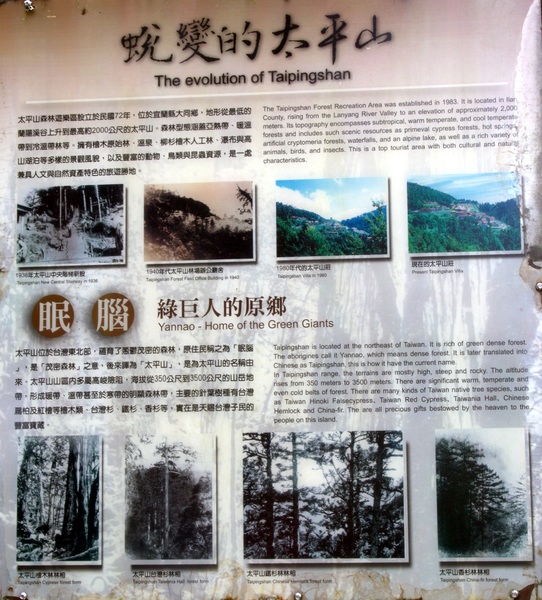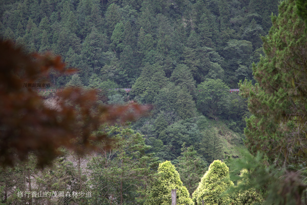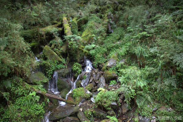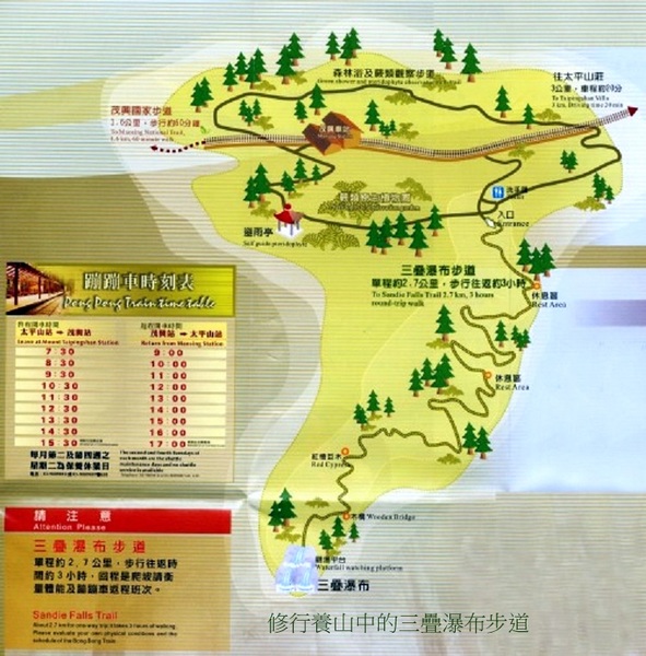 太平山莊在1940年代為林場辦公廳舍,保林’育林後,1983年後逐步修建為森林遊憩區,茂興懷舊步道’鐵杉林自然步道’三疊瀑布步道組成,茂興有蹦蹦車,養山中.鐵杉林頂設觀景大霸尖山方向景觀台,午後地表升溫,水氣生成大霸尖山的面紗,就Google欣賞了,台旁擺設了迷你馬與木馬道,想像採材’運材多辛苦.茂興車站往東南方就是三疊瀑布步道,修山養山中.
