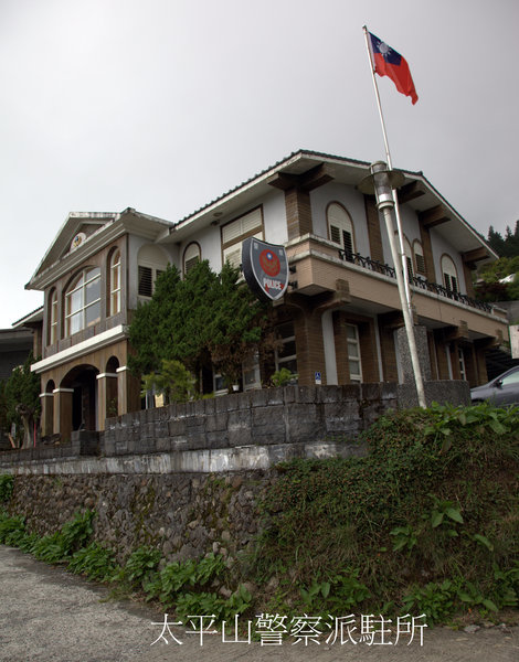 太平山莊在廣場西南側,東南側是警察派駐所,紅檜館,1936年修建的中央階梯筆直通達鎮安宮,可安步當車的修練坡,階梯東南是餐廳’旅館,西南是茂興起站’招待所’文史館’咖啡屋.