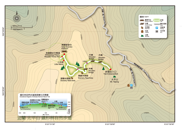 鎮安後出征鐵杉林才體會起伏滋味,溼氣高’乾淨,所以有地衣’松蘿’蕨類山蘇附著鐵杉上,森林浴場的淋漓帶上觀景台,濛朧中的出水芙蓉,豐裕的.