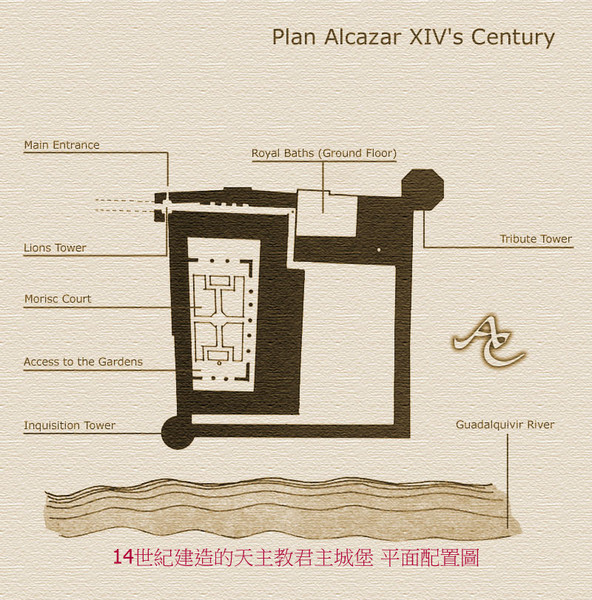 1236年卡斯蒂爾王國(Castillian Crown)費南度III世(Fernando III)取回哥多華,阿方索11(1311~1350)以羅馬’摩爾人存在的哈里法城堡為基礎完成基督(天主)教君主城堡( Castle of Christian Monarchs) 的修建,