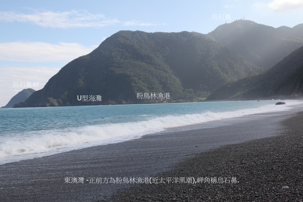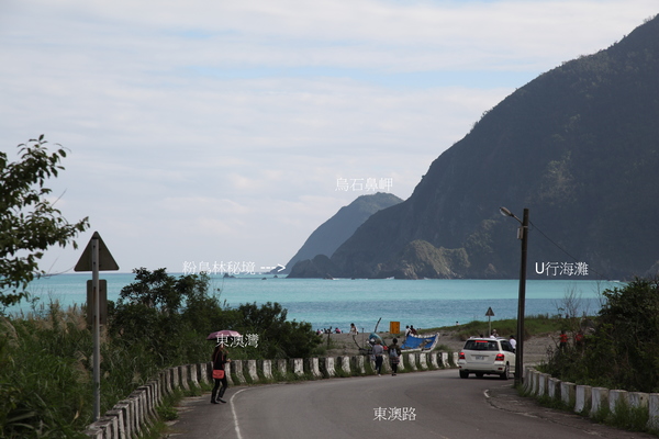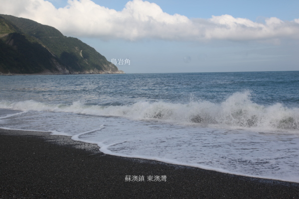 坐定,胃’腦爭奪主控,為賞蘇花爬升段海景,命令睜眼奪無波蔚藍海色,美的啜飲香茗,無關升坡噪音,也無關邊保工程礙眼,心胸容得下萬事,頓時是個冷靜’睿智的修士.東澳烏岩角就由高點南下降坡直達東澳灣,沖積’洪積三角洲,北烏岩角,南烏石鼻岬圈成, 陽光’沙灘’海浪 ,清風輕拂東澳灣,白浪逐沙灘,沒有椰林綴斜陽,只是一片海藍藍. 一個腳印是笑語一串,許多時光倒流,直到夜色走在回家的路上.