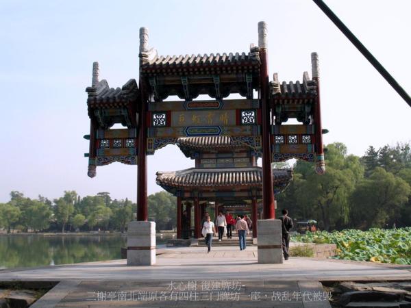 臨芳墅島上北院的5間正殿.康熙以島上遍地是鮮花芳草的實景題額“臨芳墅”,題額:“岸花沾露滿,湖月漾波寬.”由於此院清雅別致,康熙、乾隆兩皇帝都很喜歡來這裡觀景聞香,乾隆賦詩讚美了這裡的花草芬芳,詩一:“奇葩異草四時芬,八百功常鼻觀聞.是藥是花皆採取,文殊於此亦疑.。”;詩二:“別墅蕭閒碧水涯,中秋依舊有荷花.臨芳設問為誰宅,應對濂溪周子家.”此景已毀.