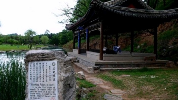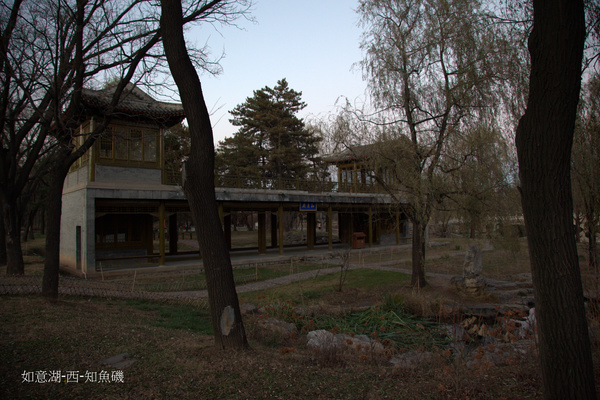 臨芳墅島上,如意洲西北岸,環境極佳,是乾隆觀魚的景點.「知魚磯」, 建於乾隆六年(1741年),此殿非常別致,下為7間敞廳上為平頂,平頂東西各建一亭.臨湖湖水清澈,陽光透射湖底,岸邊可以清楚的看到湖中的游魚在水中時潛時躍.取意於莊子與惠子在濠梁之水上,辯論人能否知魚之樂的典故.是清朝皇帝經常釣魚的地方,乾隆也常在這裡賞魚,覺得魚兒在水裡遊來遊去自得其快樂,因此命名為知魚磯. 乾隆題此景詩曰:「出水輕鰷樂意洋,臨磯欣覺會心長.由來萬物天機適,安用勞勞辨惠莊.」 魚兒在水面自由地穿梭著,悠然自得於天賜,生命自會樂於尋找生機.