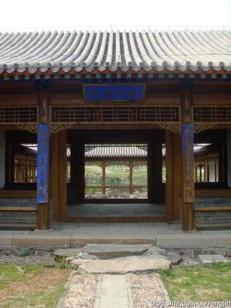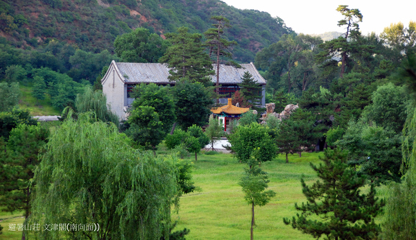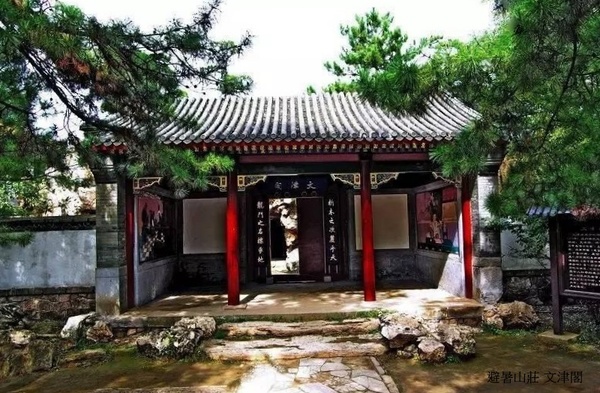 文津閣”的津是水的渡口的意思,文津,顧名思義是文化知識的渡口,要穫得知識必自此問津.這裡是清代的藏書樓.原曾珍藏《古今圖書集成》和《四庫全書》各一部.《古今圖書集成》是康熙時召集朝臣編纂的一部大型圖書,耗時十年,清康熙年間陳夢雷等原輯,後陳夢雷得罪了皇上,於是特命蔣延錫等重編輯,全書共一萬卷.文津閣建成一年時, 《四庫全書》尚未校錄完畢,所以乾隆命先將《古今圖書集成》按《四庫全書》函式裝幀,庋架排列,貯藏於文律閣內.《四庫全書》於乾隆二十八年(1773年)開始編纂,四十七年 (1783年)宣告竣工.也曆時十年.全書分經、史、子、集四大部分,故稱“四庫”。它是我國歷史上最大的一部叢書,也是世界罕見的巨著.該書共抄寫七部.。分藏於北京故宮文淵閣。圓明園文源閣、沈陽故宮文溯閣、避暑山莊文津閣、杭州文瀾閣、鎮江文宗閣和揚州文匯閣.文淵閣本現藏台灣;文源閣本在清咸豐十年 (1860年),英法聯軍侵入北京時焚毀;文津閣本於1915年運至北京,現珍藏於北京圖書館;文溯閣本現藏甘肅省圖書館;文宗閣、文匯閣本在清咸豐三年(1853年)春毀於戰火;文瀾閣在咸豐十被毀,其書流散市上,後藏書家收購,經兩次補抄,到1962年補齊,現藏浙江圖書館.