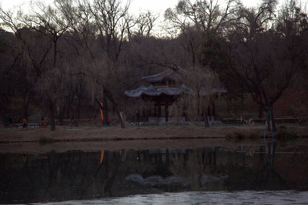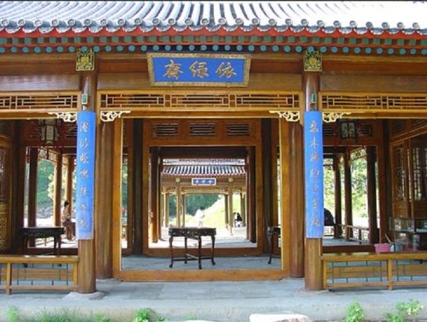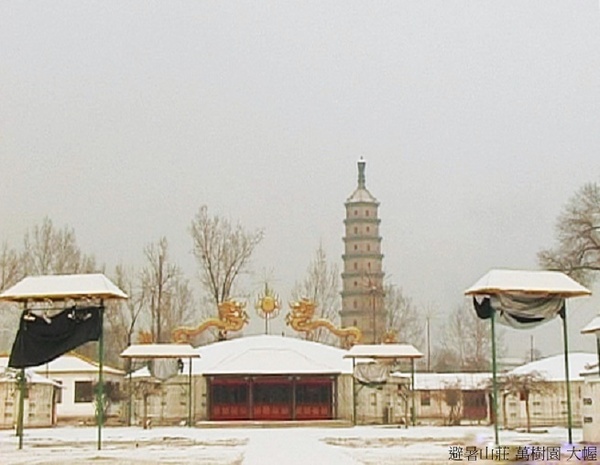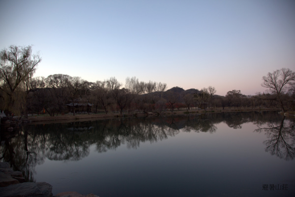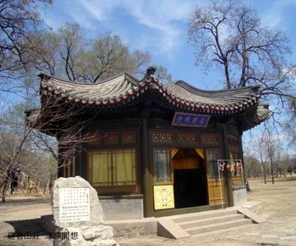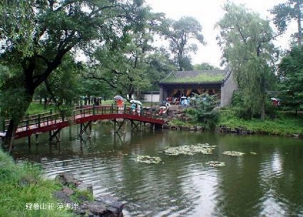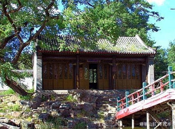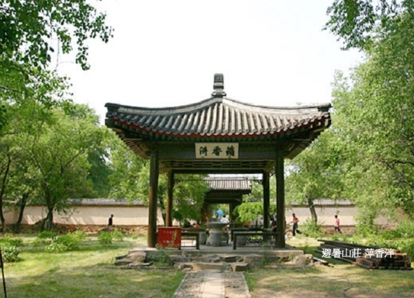 位於避暑山莊熱河泉東船塢的西邊,建於乾隆四十二年一四十七年(1703~1708年),為一組庭院建築,南有面水殿三楹,額為“萍香泮”,為乾隆三十六景之第十九景.此處前俯泉水,水上架木為橋,水中冬有碧藻.夏有青萍.清帝常於此處觀賞青萍,微風乍起,萍香襲人,湖中荷花與岸柳鳥鳴更是鳥語花香,恐是江南也難以尋覓的佳景.乾隆曾在詩中寫道:香風搖盪綠波涵,花正芳時伏數三. 詞名關山月休怨,來看塞北有江南.