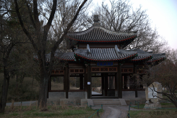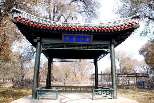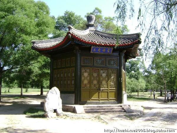 約建於康熙四十二年至四十七年(1703-1708),位於澄湖北岸,皇家的農田’瓜圃旁,為一攢尖頂方亭,皇帝觀看莊稼瓜圃領略喬木成林’品泉甘瓜脆的休憩所.亭北是廣闊的萬樹園,青草如毯的試馬埭.