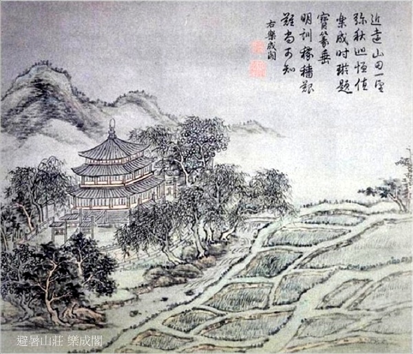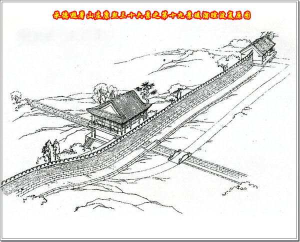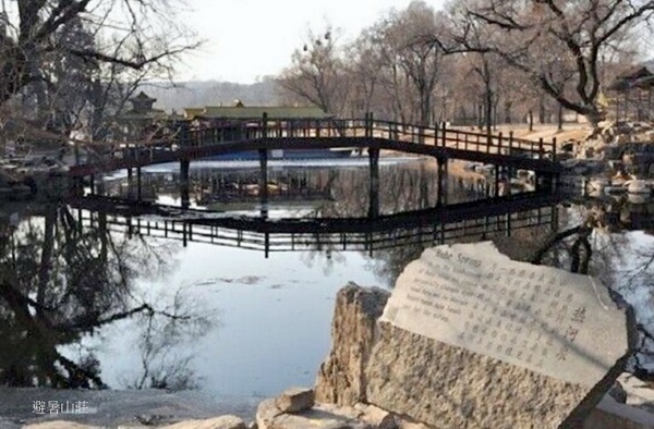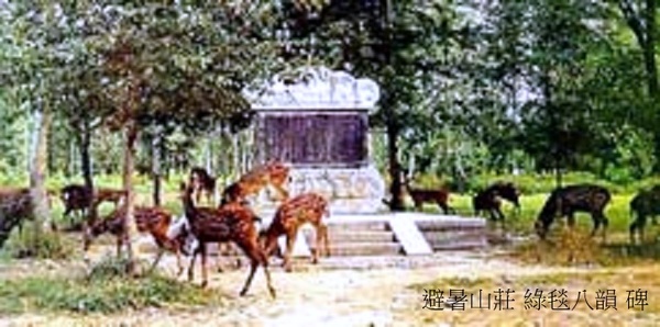“君不見,馨錘峰,獨峙山麓立其東.君不見,萬壑松,偃蓋重林造化間.”康熙為熱河泉所題之詞.避暑山莊便由此熱河泉興起.
