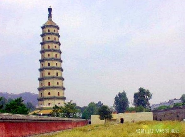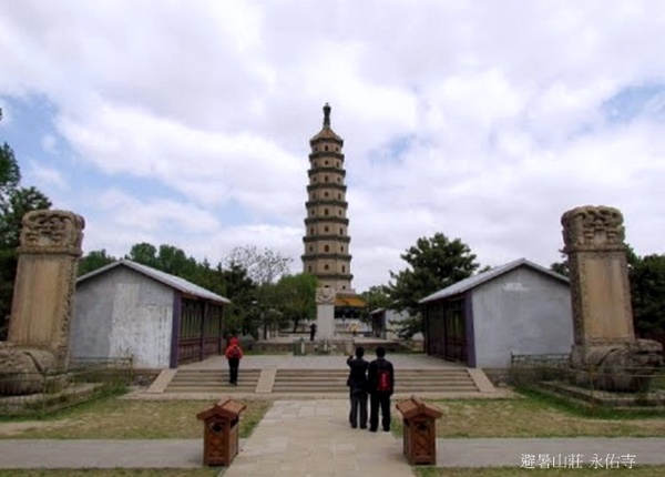 位於萬樹園東側,建於乾隆十六年(1751年),是避暑山莊內九處寺廟中最大的一處.它坐北朝南,延中軸線依次排列:山門、牌坊、天王殿、正殿、後殿、舍利塔、御容樓等建築.原正殿供奉彌勒、三世佛、八大菩薩和無量壽佛.御容樓是專門供奉清代已故皇帝畫像的地方.康熙皇帝去世以後,他的畫像即供奉在此樓上,乾隆皇帝到山莊的第一項活動,就是到這裡祭拜.後來雍正和乾隆的畫像也供奉於此.現永佑寺除舍利塔和四通石碑外,其餘均為基址. 永佑寺內四通石碑的碑文分別為「永佑寺碑文」、「永佑寺舍利塔記」、「避暑山莊後續」、「避暑山莊百韻詩」.