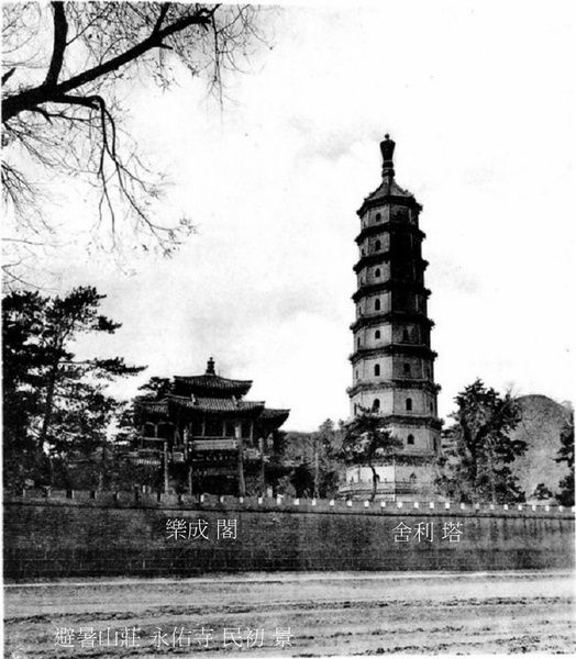 永佑寺舍利塔是仿南京報恩寺塔和杭州六和塔而建,歷時十年才建成.塔的形式為八角九層,塔身多選用石料,斗拱採用琉璃飾件.塔高65米,包括基座、塔廊、樓閣、寶頂四部分.塔廊由立柱24根組成,即是舍利塔的裝飾,亦具有為高大建築加固的作用.樓閣九層,每層均設佛壇,供奉佛像.塔內原有大量精美的壁畫,每層都有乾隆皇帝欽題的匾額,分別為:初禪精進、二諦超宗、三乘臻上、四花寶積、五智會因、六通普覺、七果圓成、八部護持、九天香界.寶頂鎦金銅鑄,重約400公斤.舍利塔是避暑山莊平原區保存較完整的建築物,也是園景區輪廓線最清晰,層次最高的一組建築.