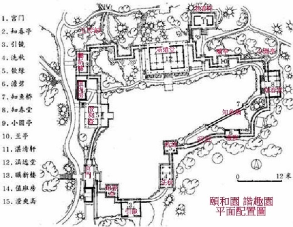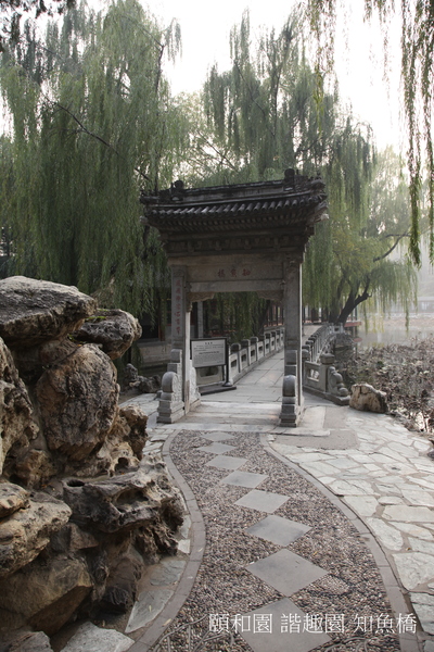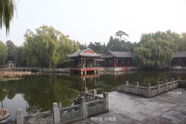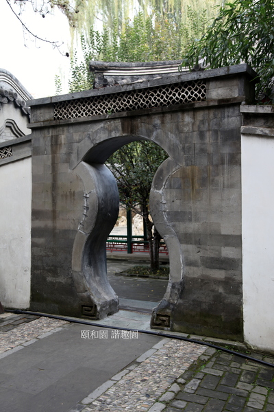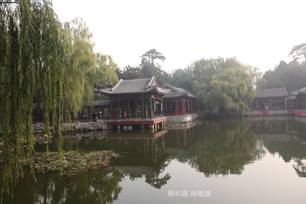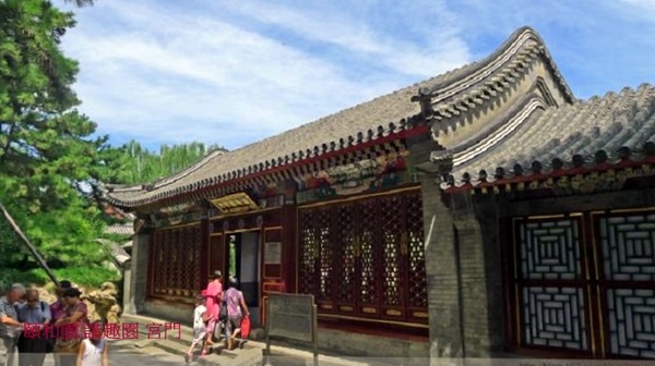 諧趣園大門是一座面闊三間的宮門,園北青石假山依坡勢佈設,間雜水澗, 面積不大的園林,由於它小巧玲瓏,在頤和園中自成一局,故有「園中之園」之稱.清乾隆時仿無錫惠山腳下的寄暢園建造,原名惠山園.嘉慶十六年(1811年)重修後,取「以物外之靜趣,諧寸田之中和」和乾隆皇帝的詩句「一亭一徑,足諧奇趣」的意思,改名為「諧趣園」.