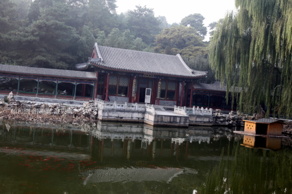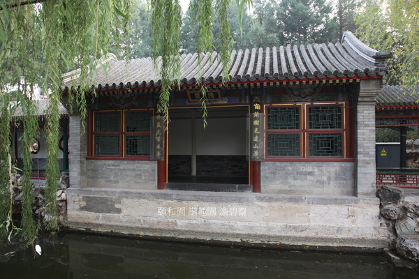 位知魚橋東南側,臨水的一間房子,有窗沒門,據說是慈禧的釣魚台,也是頤和園裡唯一的一處專為釣魚而建的房子,這座房子的牌匾上寫的是「澹碧」. 據說慈禧太后駐園期間常到這裡釣魚取樂,太監為了討其歡心,要事先派人潛到湖底,適時把魚穿上鉤,以博慈禧太后一笑.