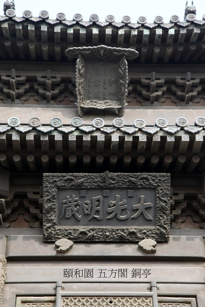 下層匾額曰“雲外天香”,意為佛香閣縈繞著非同人間的仙界芳香.