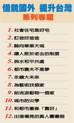 全文網址: 「借鏡國外」系列 給台灣12個新觀念 - 社會住宅 - 提升台灣 - udn時事話題 http://mag.udn.com/mag/news/storypage.jsp?f_ART_ID=326987#ixzz1QQcR7WLC