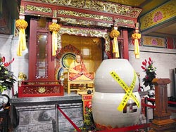 明光法師說,出家人遺體處理方式有荼毘(火化)、植葬、坐缸等,通常在生前就會囑咐。悟明老和尚卅年前就訂製上下對口的蓮花缸,更發願信眾若以大悲水誠心祈求,必滿其願。