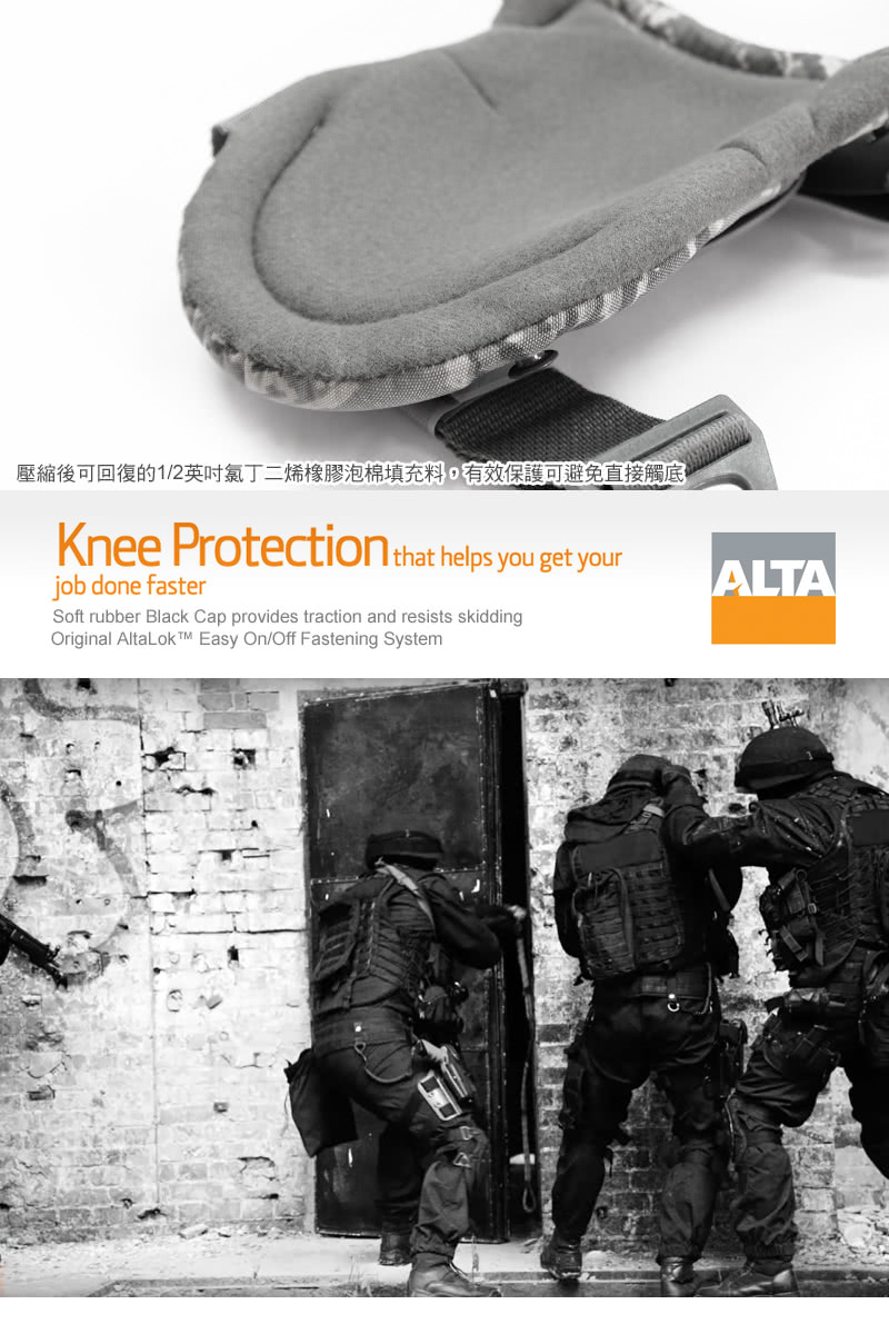 ALTA深以身為業界最高品質護膝、護肘的原開發商為榮。在這段時間裡,ALTA為這個產業的使用者、軍方、戰術以及戶外運動市場提供了超過350萬副護膝,由熟悉此產業需求的專家幫助ALTA設計產品。ALTA產品具備創新設計、優質結構,且最重要的就是能滿足使用者需求的實用性產品。亦有提供符合美國國防部紡織品服裝採購的貝瑞修正案Berry Amendment的產品。