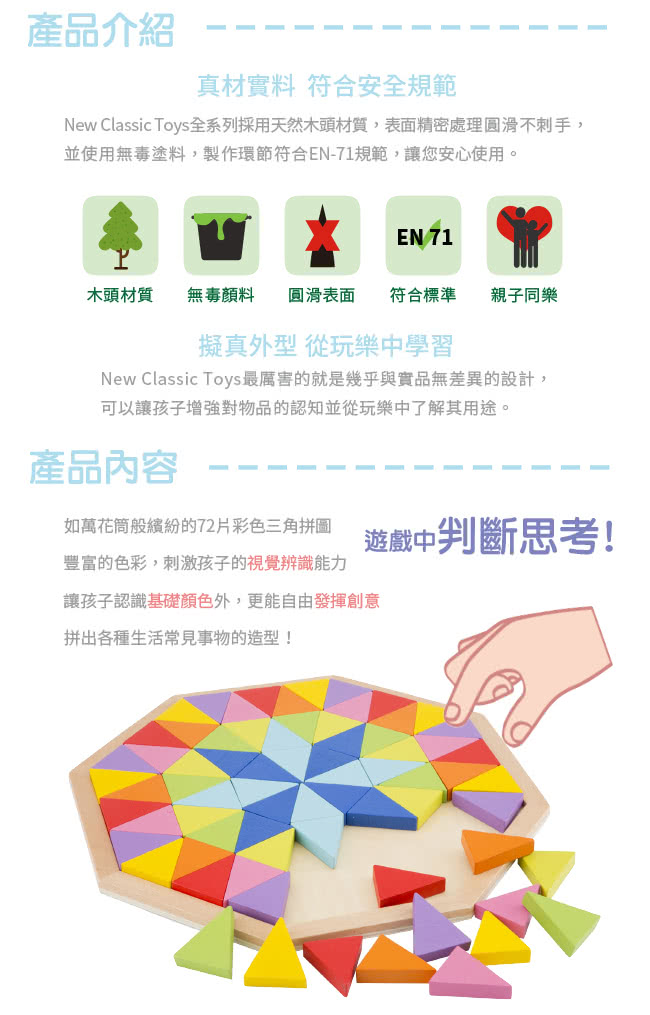 不過看了這麼多網站真真假假的資料,【New Classic Toys】幼幼彩色幾何七巧積木(10515)是我在看到最多人推薦的好物