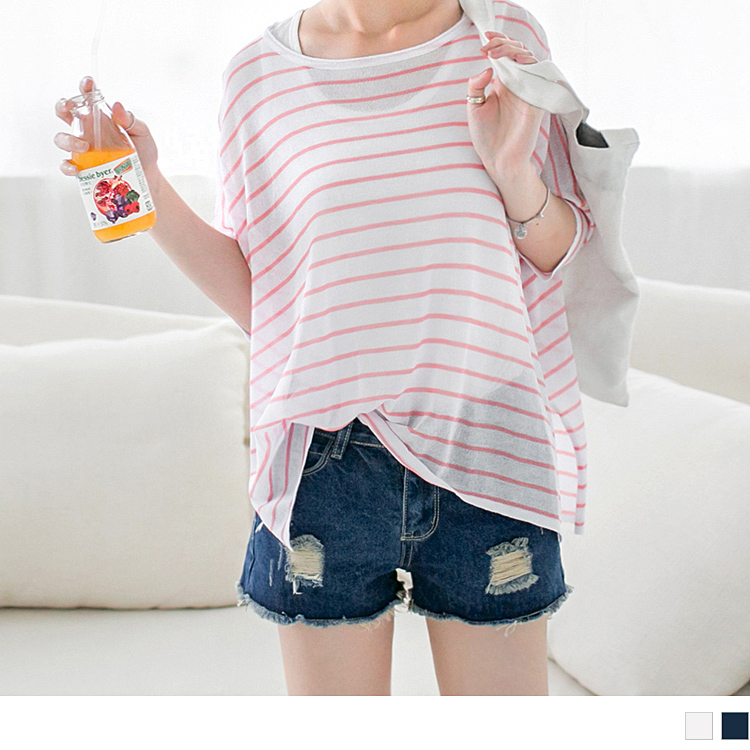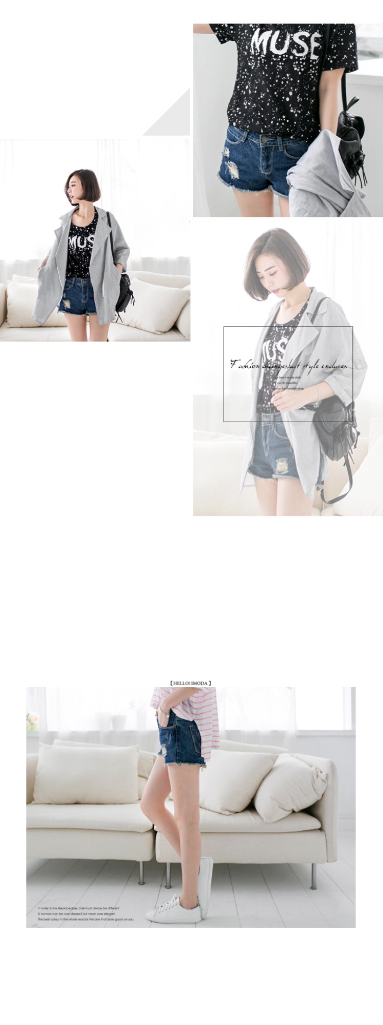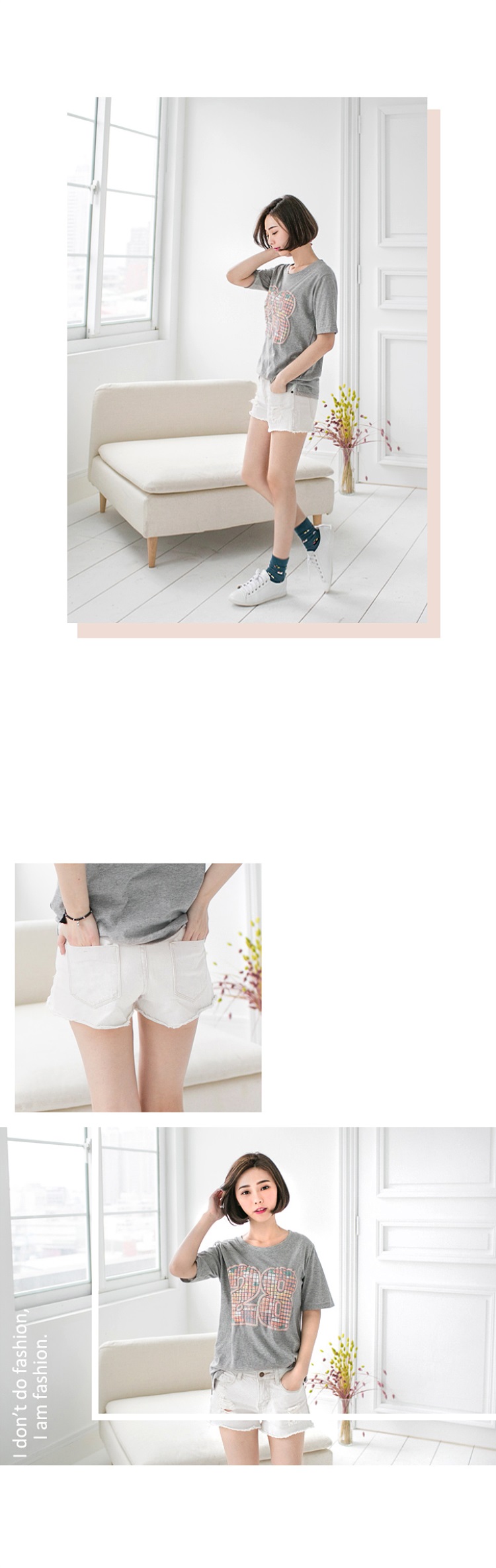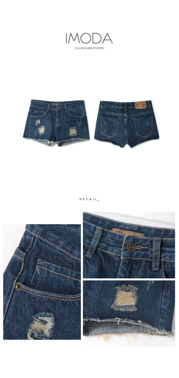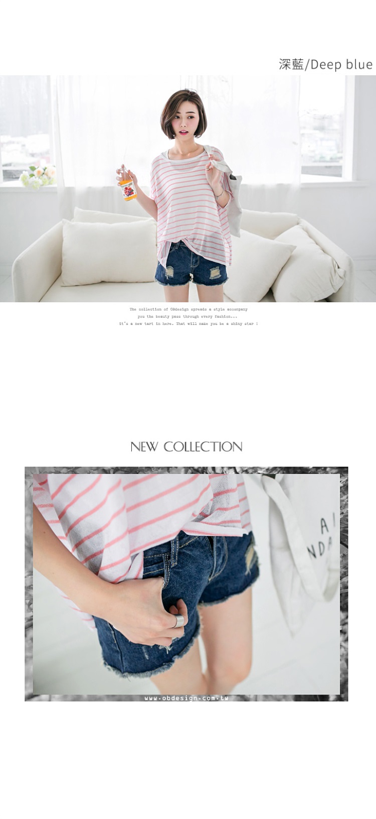 0601新品 牛仔混色刷破造型抽鬚短褲.2色