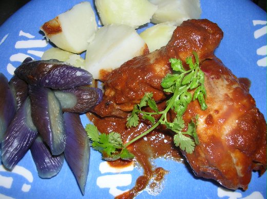 印度咖哩可以配印度麵餅 飯 或麵包一起食用. 這次燙熟馬鈴薯與茄子, 可以用來沾醬汁.