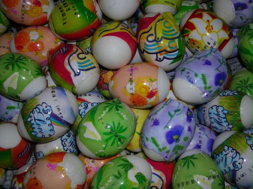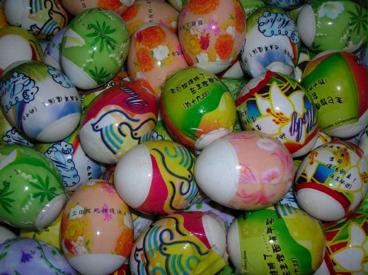 孩子小時後﹐我們都是把水煮蛋放在食物顏色裡染成不同的顏色。