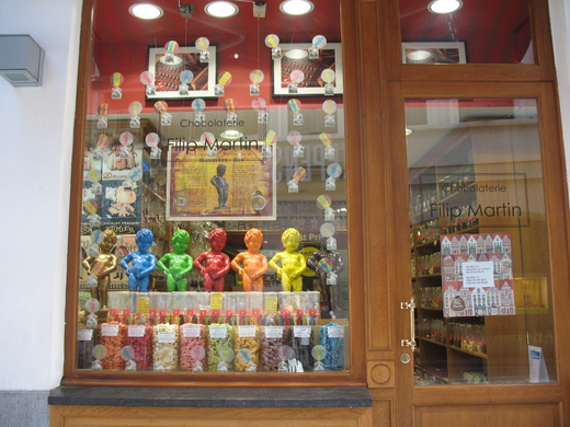 在比利時的布魯塞爾的大廣場閑晃,看到有趣的糖果小店,店家把尿尿小童作