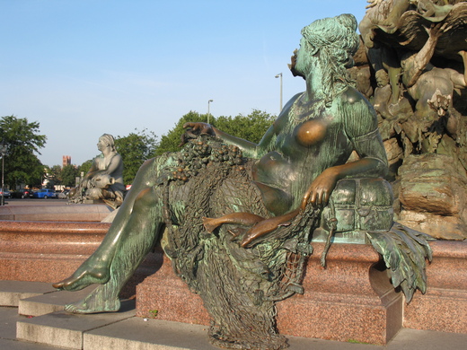 從紅色市政廳開始我一天的徒步之旅,看到廣場噴水池的雕像,