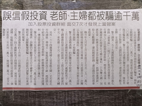 誤信假投資假老師主婦被騙千萬(114.12.04)