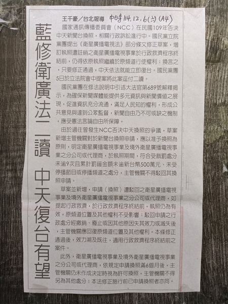 藍修衛廣法二讀中天復台有望(114.12.06)