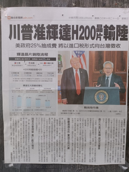 川普准輝達H200晶片輸陸(114.12.10)