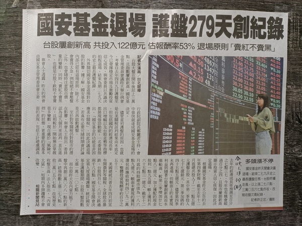 國安基金退場護盤279天創紀錄(115.01.14)