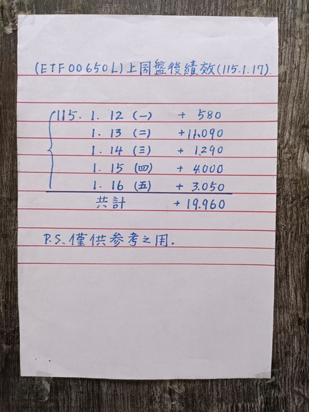 ETF00650L上週盤後績效報告(115.01.17)