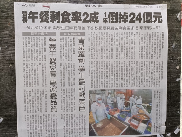 營養午餐剩食率將近二成(114.08.23)