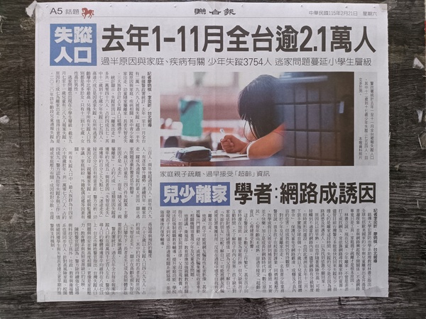 去年全台失蹤人口逾2.1萬人(115.02.19)