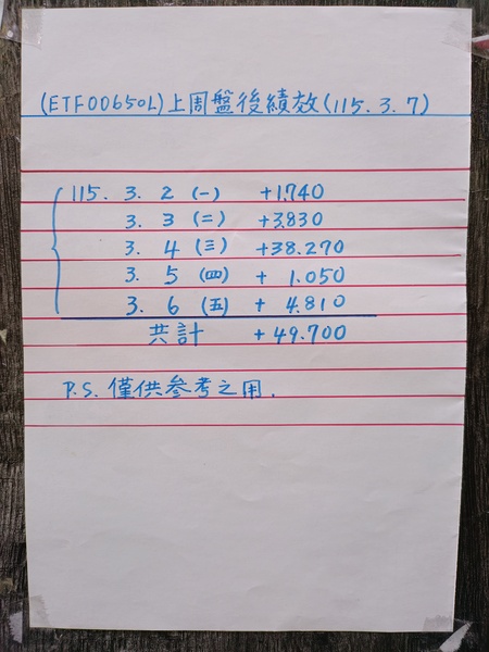 (ETF00650L)上週盤後績效報告(115.03.07)